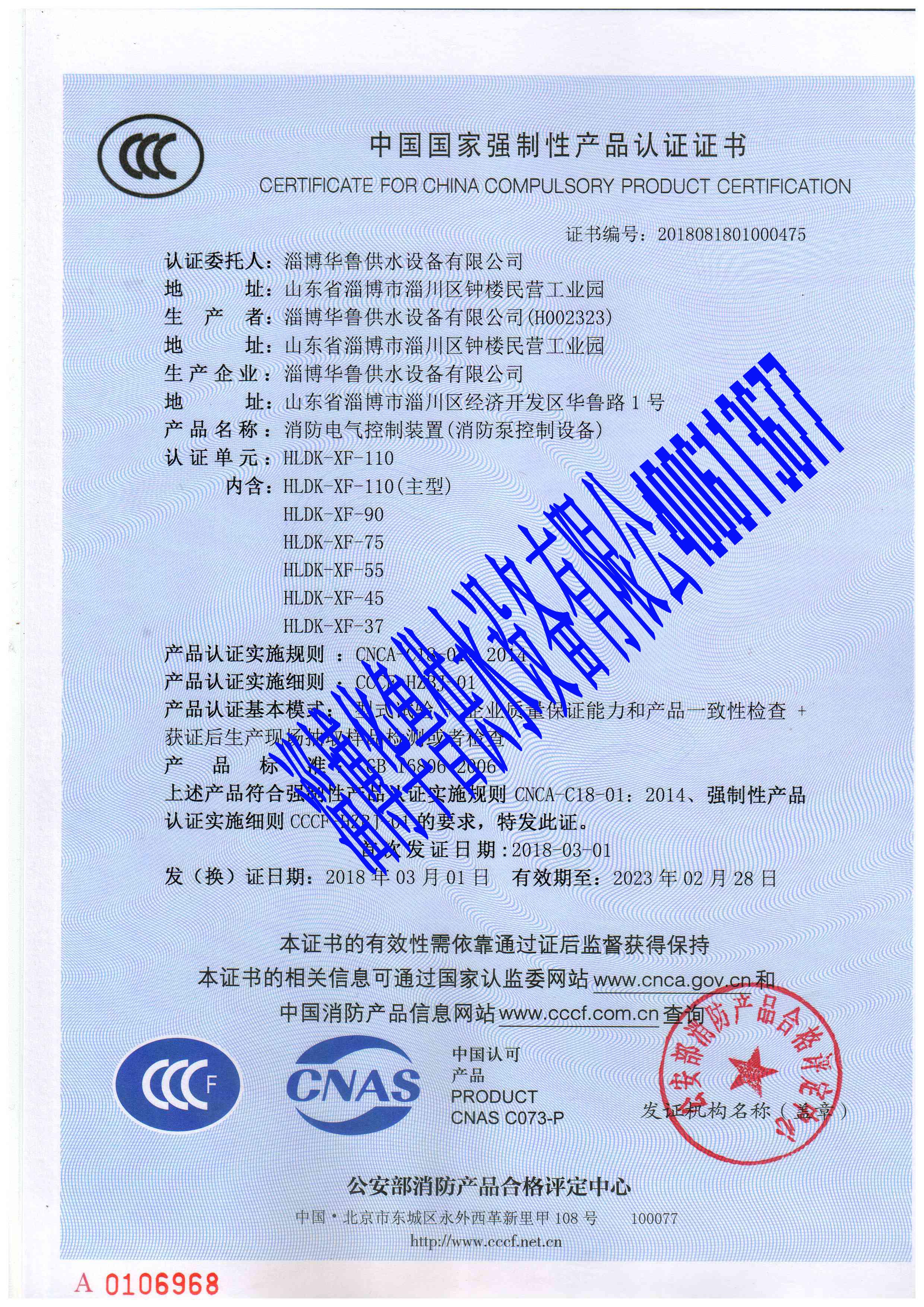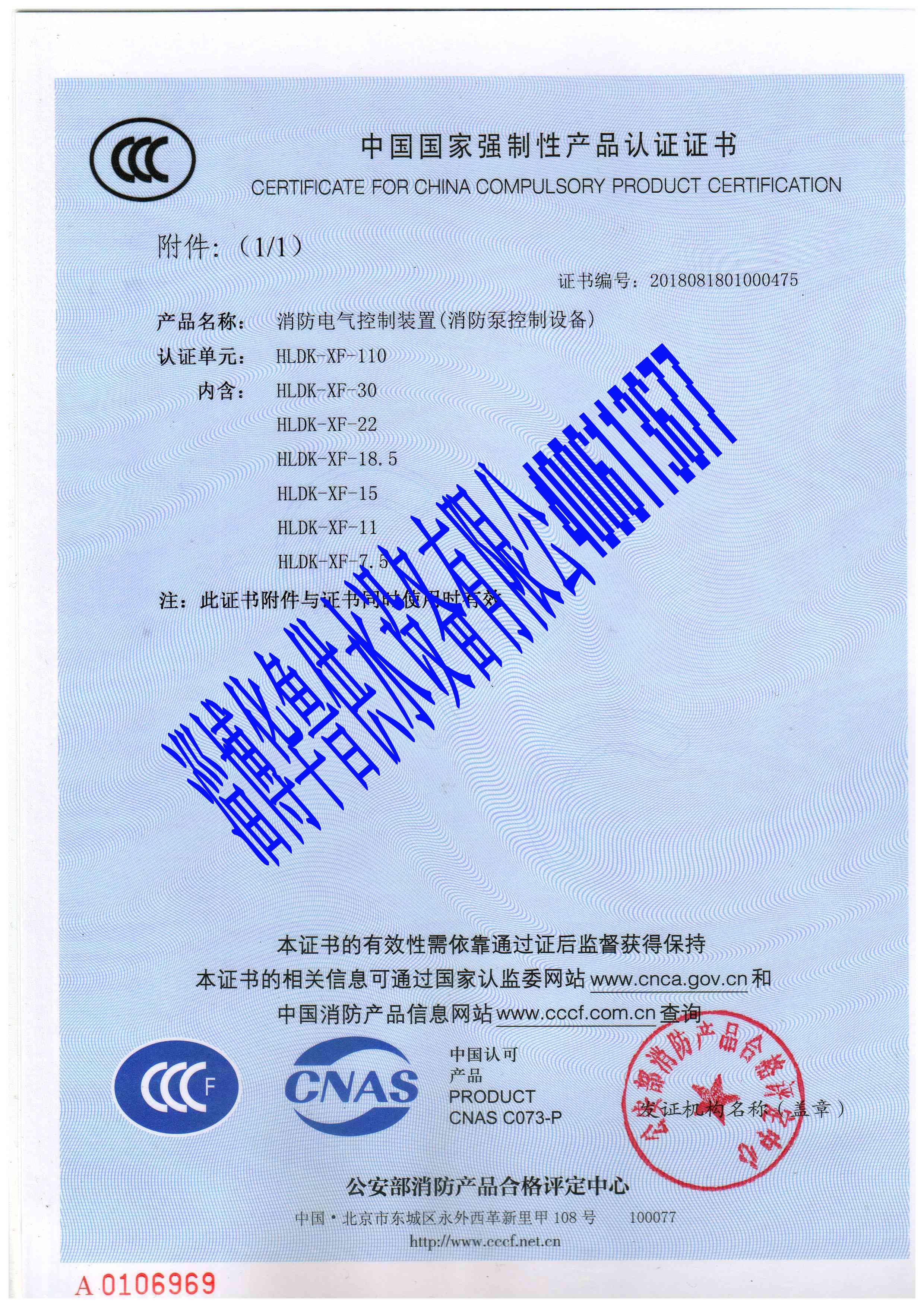 消防控制柜全系列CCCF證書(shū)